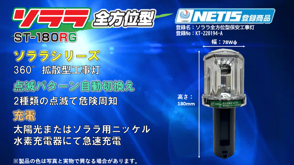 設置時に向きを気にせず置くことができ、仕事の効率化と夜間での安全性を最大限up!